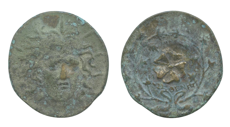 Τη χρονική αυτή περίοδο φαίνεται πως χρονολογείται το μεγάλο ροδιακό νόμισμα, που εξετάζουμε, με την ακτινοστεφή μετωπική κεφαλή του Ηλίου ως εμπροσθότυπο και το ρόδον (το λαλούν σύμβολο της Ρόδου) ανθισμένο, όπως θεάται από πάνω, παράσταση εντός στεφάνου δρυός ως οπισθότυπο.