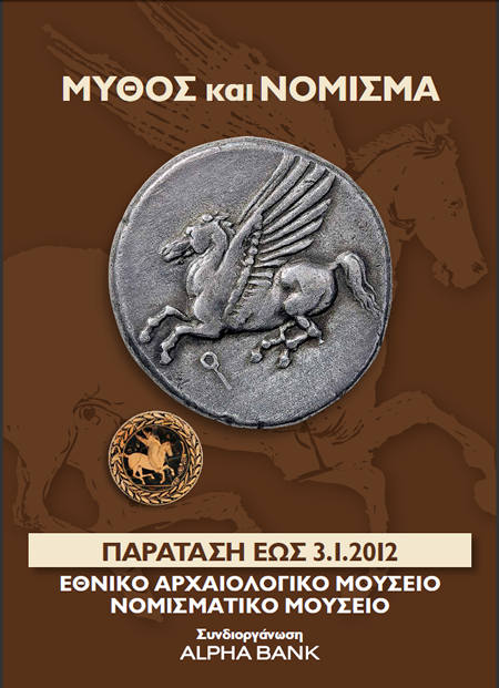 Ολοκληρώθηκε στις 3 Ιανουαρίου 2012 η περιοδική έκθεση «Μύθος και Νόμισμα». Η έκθεση ήταν σπονδυλωτή και αποτελούσε συνδιοργάνωση του Νομισματικού Μουσείου, της Νομισματικής Συλλογής της Alpha Bank και του Εθνικού Αρχαιολογικού Μουσείου. Στο Εθνικό Αρχαιολογικό Μουσείο παρουσιάστηκε η απεικόνιση των μύθων στα νομίσματα, ενώ στο Νομισματικό Μουσείο η χρήση του μύθου.