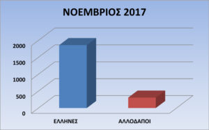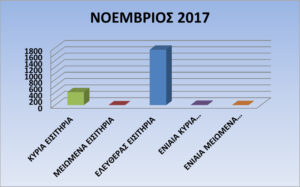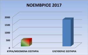 Το Νοέμβριο του 2017, επισκέφθηκαν το Νομισματικό Μουσείο 2168 επισκέπτες. Ιδιαίτερη αύξηση παρουσιάζουν τα εισιτήρια ελευθέρας εισόδου, γεγονός που οφείλεται, τόσο στην καθιέρωση της ελεύθερης εισόδου κάθε πρώτη Κυριακή του μήνα, κατά τους χειμερινούς μήνες, αλλά και στη μεγάλη ανταπόκριση που έχει το μουσείο μας, στις σχολικές ομάδες, καθώς και στη διοργάνωση ποικίλων εκδηλώσεων.