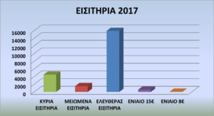 Στα στατιστικά στοιχεία του Δεκεμβρίου 2017 διαπιστώνεται σταθερά η προτεραιότητα των Ελλήνων έναντι των αλλοδαπών. Επίσης, λόγω της αυξημένης προσέλευσης σχολικών ομάδων, παρατηρείται ότι ο μεγαλύτερος αριθμός εισιτηρίων είναι ελευθέρας εισόδου, έναντι των κυρίων και μειωμένων εισιτηρίων.