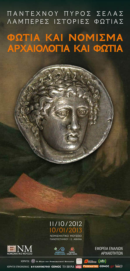Την Πέμπτη 11 Οκτωβρίου 2012 και ώρα 19:00 εγκαινιάζεται στο Νομισματικό Μουσείο η περιοδική έκθεση: ΦΩΤΙΑ ΚΑΙ ΝΟΜΙΣΜΑ – ΑΡΧΑΙΟΛΟΓΙΑ ΚΑΙ ΦΩΤΙΑ. ΤΕΧΝΑΣ ΔΕ ΠΑΣΑΣ ΚΑΙ ΑΝΕΥΡΕ ΤΟ ΠΥΡ ΚΑΙ ΣΩΖΕΙ που συνδιοργανώνεται από το Νομισματικό Μουσείο και την Εφορεία Εναλίων Αρχαιοτήτων στο πλαίσιο της Πανελλαδικής Δράσης ΠΕΡΙΒΑΛΛΟΝ ΚΑΙ ΠΟΛΙΤΙΣΜΟΣ 2012, που, εμπνευσμένη από το μύθο του Προμηθέα, φέρει για τη διετία 2012-2013 τον τίτλο: Παντέχνου Πυρός Σέλας – Λαμπερές Ιστορίες Φωτιάς.