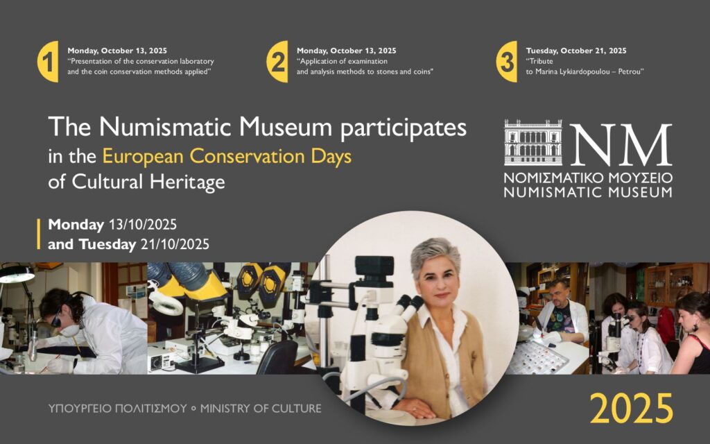 The first activity on the theme “Presentation of the Numismatic Museum’s conservation laboratory and the coin conservation methods applied” will take place on Monday, October 13, 2025, at 10:00, 11:00 and 12:00, in the Museum’s laboratory.
