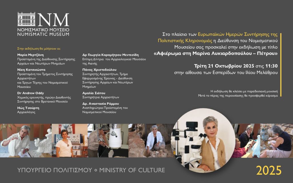 On Tuesday, October 21, 2025, at 11:30, the Museum is organizing the event “Tribute to Marina Lykiardopoulou – Petrou”.
